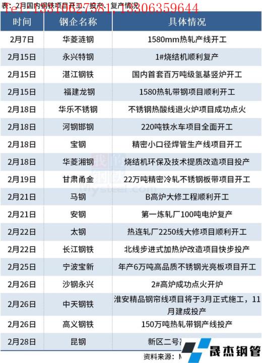 免責聲明:本網站(山東聊城晟杰無縫鋼管廠www.ahcom.com.cn)刊載的“2月國內18個鋼鐵項目開工、投產和復產”等均源于網絡,版權歸原作者所有,且僅代表原作者觀點,本文所載信息僅供參考。轉載僅為學習與交流之目的,如無意中侵犯您的合法權益,請及時聯系刪除。本網站刊登此篇文章并不意味著本站贊同其觀點或證實其內容的真實性,我們不對其科學性、嚴肅性等作任何形式的保證。如果侵犯了您的版權,請盡快聯系我們予以撤銷,謝謝合作!