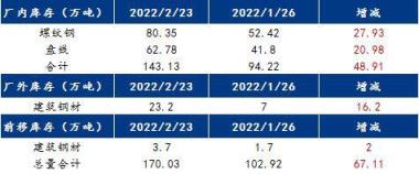 截至2月23日,省內(nèi)14家樣本無縫厚壁鋼管廠家廠內(nèi)建材庫存共計143.13萬噸,其中螺紋庫存80.35萬噸,線盤庫存62.78萬噸。除廠內(nèi)庫存外,目前無縫厚壁鋼管廠家外庫共23.2萬噸,庫存前移至消費地共3.7萬噸。從近三年省內(nèi)庫存數(shù)據(jù)來看,目前省內(nèi)無縫厚壁鋼管廠家建材庫存低于去年同期,主要原因在于去年省內(nèi)無縫厚壁鋼管廠家冬儲自儲比例較大,今年的庫存整體處于近三年的中高位水平。目前省內(nèi)無縫厚壁鋼管廠家?guī)齑嬉殉尸F(xiàn)下降態(tài)勢,周邊市場需求逐步啟動,供應(yīng)端產(chǎn)能利用率緩慢恢復下,預(yù)計后期庫存去化速率或有加快。