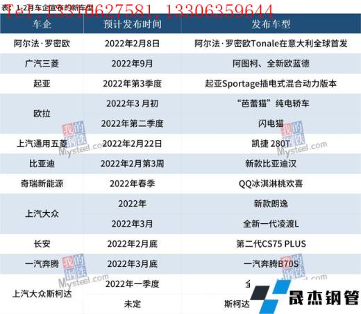 免責聲明:本網站(山東聊城晟杰無縫鋼管廠www.ahcom.com.cn)刊載的“1-2月19家車企發布新車型規劃”等均源于網絡,版權歸原作者所有,且僅代表原作者觀點,本文所載信息僅供參考。轉載僅為學習與交流之目的,如無意中侵犯您的合法權益,請及時聯系刪除。本網站刊登此篇文章并不意味著本站贊同其觀點或證實其內容的真實性,我們不對其科學性、嚴肅性等作任何形式的保證。如果侵犯了您的版權,請盡快聯系我們予以撤銷,謝謝合作!