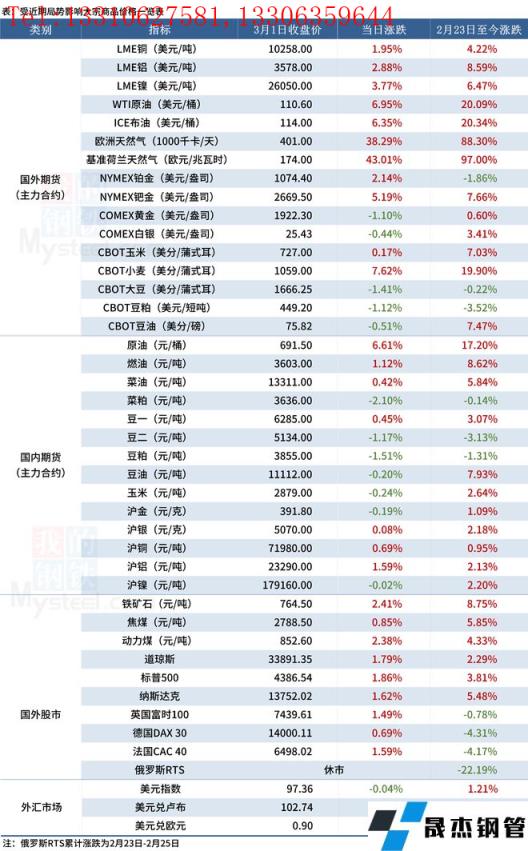近期,受國際局勢影響,全球金融及大宗商品市場出現(xiàn)較大波動。3月2日,多個大宗商品價格創(chuàng)多年新高,天然氣累計漲幅超80%,原油突破110美金。匯總情況如下:
