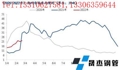 2022年河南市場整體冬儲量遠(yuǎn)超去年,但實(shí)際節(jié)后到貨情況低于預(yù)期,主要減量是在個別省內(nèi)無縫厚壁鋼管廠家螺紋產(chǎn)線仍未復(fù)產(chǎn),且盤螺線臨近2月中下旬恢復(fù)正常生產(chǎn),多數(shù)冬儲量未交付;此外冬奧會期間省外無縫厚壁鋼管廠家生產(chǎn)不暢,到貨節(jié)奏偏緩,整體省內(nèi)累庫速度后延。據(jù)數(shù)據(jù)統(tǒng)計,截止至2月25日,鄭州市場建筑厚壁無縫鋼管庫存在22.2萬噸,年同比降幅在26.8%。據(jù)市場反饋,2022年河南省基建項(xiàng)目新開工居多,彌補(bǔ)部分房建缺口,在下游工地需求緩慢釋放下,大部分資源已發(fā)至工地。但隨著部分無縫厚壁鋼管廠家要求代理商將冬儲資源全部提走,近期資源已從廠庫陸續(xù)轉(zhuǎn)移至社庫,且疊加3月份代理商正常協(xié)議量,預(yù)估3月下旬至4月初鄭州市場庫存或面臨峰值,但庫存峰值或低于去年水平。