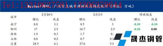 本周廣西地區(qū)螺紋資源社會庫存整體下降,商家出貨好轉(zhuǎn)。進入3月,厚壁無縫鋼管原料消息面有所放寬,需求復蘇,整個黑色系期貨近期首次出現(xiàn)全面大幅拉漲,市場看漲氛圍濃厚,給予市場較大的操作空間。同時,在期貨的刺激下廣西本地需求進一步釋放,周二商家迎來了出貨拐點,當天成交爆發(fā)式增長,為后續(xù)成交奠定基礎(chǔ)。從資源分配來看,南寧區(qū)域由于部分商家的資源從廠里直發(fā)進入工地,進入倉庫資源相對有限,因而南寧庫存出現(xiàn)小幅度下降。同時,柳鋼本部生產(chǎn)飽和度較低,廣西投放資源有限,柳州社會庫存也出現(xiàn)不增反降局面。價格方面,無縫厚壁鋼管廠家出廠價推漲及時,本周截至周四廣西推漲90元/噸,但從周邊市場來看,廣西價格處于低位,周邊資源流入利潤空間較少,整體流入量有所下降。截至目前,廣西市場庫存建筑厚壁無縫鋼管33.58萬噸,較上周相比減少1.02萬噸。