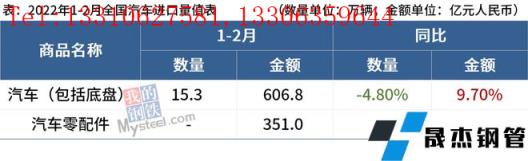 免責聲明:本網站(山東聊城晟杰無縫鋼管廠www.ahcom.com.cn)刊載的“海關總署:1-2月中國出口汽車47.7萬輛,同比增69.70%”等均源于網絡,版權歸原作者所有,且僅代表原作者觀點,本文所載信息僅供參考。轉載僅為學習與交流之目的,如無意中侵犯您的合法權益,請及時聯系刪除。本網站刊登此篇文章并不意味著本站贊同其觀點或證實其內容的真實性,我們不對其科學性、嚴肅性等作任何形式的保證。如果侵犯了您的版權,請盡快聯系我們予以撤銷,謝謝合作!