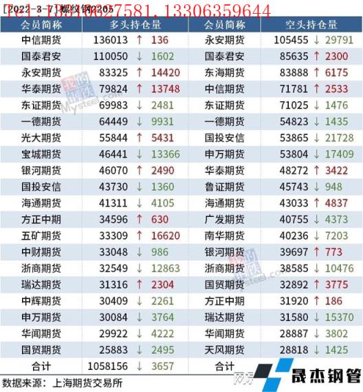 截至3月7日收盤,螺紋鋼2205收5094元/噸,漲4.36%;熱卷2205收5380元/噸,漲2.81%;鐵礦石2205收870元/噸,漲7.08%。