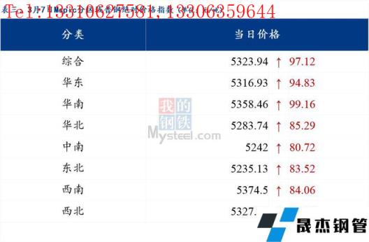 3月7日普鋼絕對價格指數(shù)變化:綜合指數(shù)5323.94,上漲97.12;螺紋鋼指數(shù)5050.76,上漲96.72;線材指數(shù)5381.55,上漲87.69;熱軋板卷指數(shù)5290.22,上漲130.08;冷軋板卷指數(shù)5691.7,上漲102.11;中厚板指數(shù)5275.26,上漲75.98。