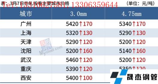 3月7日,國內厚壁無縫鋼管市場全線上漲,唐山普方坯出廠價漲70報4810元/噸。今日黑色商品期貨市場大漲,厚壁無縫鋼管現貨市場成交明顯放量,無縫厚壁鋼管廠家及貿易商積極拉漲鋼價。