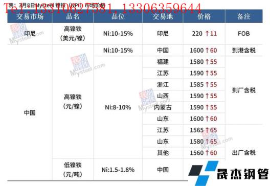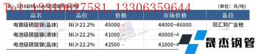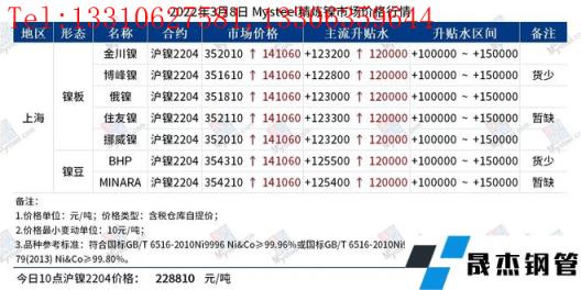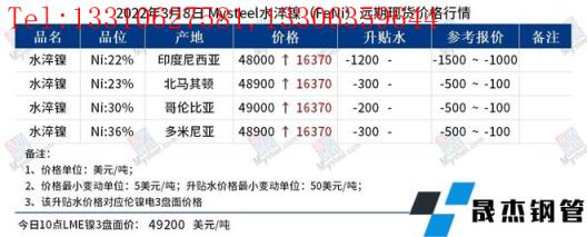 免責(zé)聲明:本網(wǎng)站(山東聊城晟杰無(wú)縫鋼管廠www.ahcom.com.cn)刊載的“鎳產(chǎn)業(yè)鏈價(jià)格(2022.3.8)”等均源于網(wǎng)絡(luò),版權(quán)歸原作者所有,且僅代表原作者觀點(diǎn),本文所載信息僅供參考。轉(zhuǎn)載僅為學(xué)習(xí)與交流之目的,如無(wú)意中侵犯您的合法權(quán)益,請(qǐng)及時(shí)聯(lián)系刪除。本網(wǎng)站刊登此篇文章并不意味著本站贊同其觀點(diǎn)或證實(shí)其內(nèi)容的真實(shí)性,我們不對(duì)其科學(xué)性、嚴(yán)肅性等作任何形式的保證。如果侵犯了您的版權(quán),請(qǐng)盡快聯(lián)系我們予以撤銷,謝謝合作!