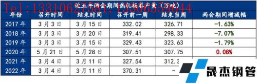 庫存方面來看,近五年兩會期間熱軋板卷庫存除2017年有小幅上漲外,其余年份均迎來收窄,其中2020年降幅較大,達(dá)到9.19%;2018年、2019年和2021年庫存降幅分別為2.52%、1.51%以及1.67%。