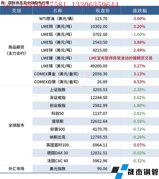 免責聲明:本網站(山東聊城晟杰無縫鋼管廠www.ahcom.com.cn)刊載的“2022年03月09日早讀:LME緊急切斷鎳期貨交易,美宣布禁止進口俄羅斯石油”等均源于網絡,版權歸原作者所有,且僅代表原作者觀點,本文所載信息僅供參考。轉載僅為學習與交流之目的,如無意中侵犯您的合法權益,請及時聯系刪除。本網站刊登此篇文章并不意味著本站贊同其觀點或證實其內容的真實性,我們不對其科學性、嚴肅性等作任何形式的保證。如果侵犯了您的版權,請盡快聯系我們予以撤銷,謝謝合作!