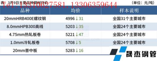 ◎截止3月9日,調研的山東11家長短流程無縫厚壁鋼管廠家綜合廢鋼比19.88%,周環比增7.81%;廢鋼消耗總量在13.76萬噸,周環比增2.27萬噸;廢鋼庫存為13.79萬噸,周環比減0.97萬噸。詳情>>