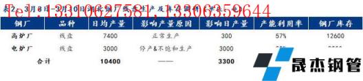 2、湖北省建材無(wú)縫厚壁鋼管廠家螺紋鋼日產(chǎn)量3.36萬(wàn)噸,周環(huán)比增加0.37萬(wàn)噸。停產(chǎn)/不飽和生產(chǎn)影響建材日產(chǎn)量為1.98萬(wàn)噸,產(chǎn)能利用率63%,周環(huán)比增加7%。