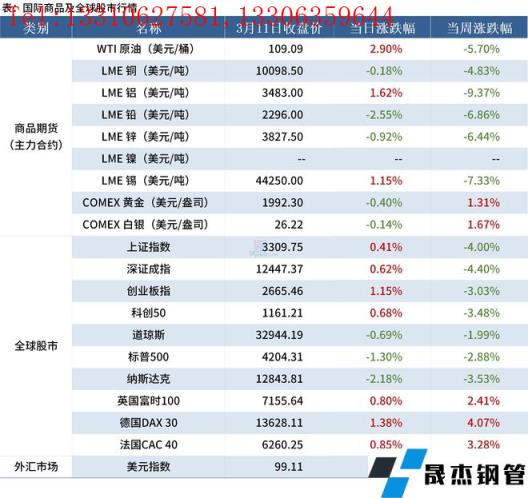 金融市場:本周主要商品期貨除黃金、白銀上漲外,其余品種價(jià)格均下跌;全球股市中,中國股市、美股下跌,歐股上漲;美元指數(shù)99.11,上漲0.61%。