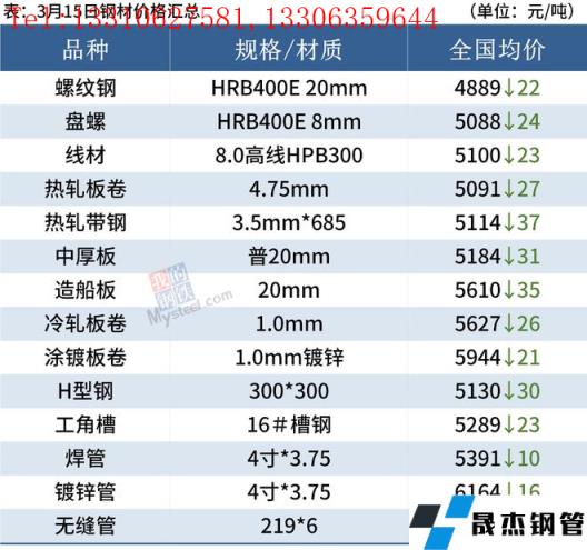 3月15日,國內厚壁無縫鋼管市場普遍下跌,唐山普方坯出廠價下跌20報4640元/噸。今日早盤,黑色期貨全線低開,厚壁無縫鋼管現貨市場跟隨下跌,隨著市場低價成交有所好轉,期螺跌勢有所放緩。