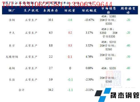 江蘇優特無縫厚壁鋼管廠家棒材總庫存34.2萬噸,較上周下降1.1萬噸,環比降3.12%,較去年同期下降7.97萬噸,同比降18.9%,目前江蘇優特無縫厚壁鋼管廠家除東方特鋼一條棒材線檢修外,其余無縫厚壁鋼管廠家正常生產。