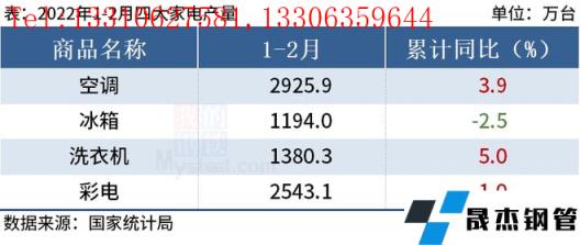 免責聲明:本網站(山東聊城晟杰無縫鋼管廠www.ahcom.com.cn)刊載的“統計局:1-2月中國四大家電產量3增1降”等均源于網絡,版權歸原作者所有,且僅代表原作者觀點,本文所載信息僅供參考。轉載僅為學習與交流之目的,如無意中侵犯您的合法權益,請及時聯系刪除。本網站刊登此篇文章并不意味著本站贊同其觀點或證實其內容的真實性,我們不對其科學性、嚴肅性等作任何形式的保證。如果侵犯了您的版權,請盡快聯系我們予以撤銷,謝謝合作!