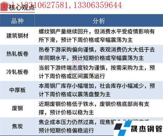 本周國內多地無縫厚壁鋼管廠家運輸受阻,鋼市成交量明顯下滑,短期廠內庫存或進一步累積,抑制鋼價反彈高度。不過,電爐廠已陷入虧損,加之預期穩增長政策將出,鋼價底部支撐力度也強。當前市場復雜多變,國內疫情形勢,穩增長政策落實情況以及國際局勢變化仍是主要關注點。