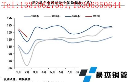 鋼鐵是終端制造業(yè)的重要生產(chǎn)原材料,以鋼鐵消費趨勢為觀測視角可以較為準確的判斷下游制造業(yè)發(fā)展狀況。2月鋼鐵業(yè)供給指數(shù)為146.92,同比下降5.26,環(huán)比下降2.86%。北方地區(qū)在采暖季和冬奧會環(huán)保影響下,厚壁無縫鋼管產(chǎn)量管控依然嚴格。據(jù)統(tǒng)計,2月全國粗鋼產(chǎn)量6738.5萬噸,日均產(chǎn)量240.66萬噸,環(huán)比減少9.79萬噸,降幅3.91%,同比下降13.86%。消費方面,五大品種厚壁無縫鋼管消費環(huán)比下降19.63%,同比下降4%。具體來看,房地產(chǎn)資金緊張雖有緩解,但受季節(jié)影響,用鋼量繼續(xù)下降,建筑厚壁無縫鋼管表觀消費量環(huán)比下降38%。制造業(yè)方面,受春節(jié)和疫情干擾因素影響,2月份,制造業(yè)企業(yè)復工復產(chǎn)較晚,實際用鋼消費下降,其中熱卷消費同比下降7.4%,環(huán)比下降8.2%。