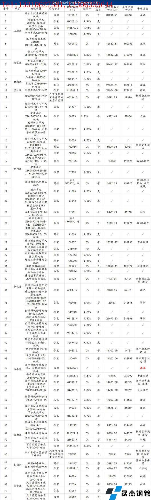 2022年杭州首批土地集中出讓落下帷幕,60宗地塊(包含2宗人才租賃用地)總占地面積約3849畝,總起拍價達798億元。
