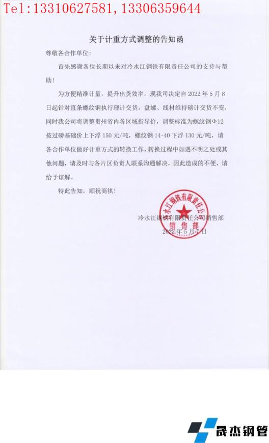 免責(zé)聲明:本網(wǎng)站(山東聊城晟杰無(wú)縫鋼管廠www.ahcom.com.cn)刊載的“冷水江鋼鐵有限責(zé)任公司關(guān)于對(duì)貴州區(qū)域計(jì)重方式調(diào)整的告知函”等均源于網(wǎng)絡(luò),版權(quán)歸原作者所有,且僅代表原作者觀點(diǎn),本文所載信息僅供參考。轉(zhuǎn)載僅為學(xué)習(xí)與交流之目的,如無(wú)意中侵犯您的合法權(quán)益,請(qǐng)及時(shí)聯(lián)系刪除。本網(wǎng)站刊登此篇文章并不意味著本站贊同其觀點(diǎn)或證實(shí)其內(nèi)容的真實(shí)性,我們不對(duì)其科學(xué)性、嚴(yán)肅性等作任何形式的保證。如果侵犯了您的版權(quán),請(qǐng)盡快聯(lián)系我們予以撤銷,謝謝合作!
