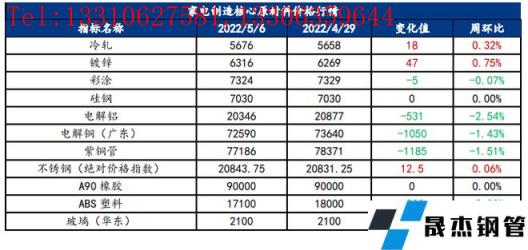 免責聲明:本網站(山東聊城晟杰無縫鋼管廠www.ahcom.com.cn)刊載的“家電原材料周報(5.2-5.6)”等均源于網絡,版權歸原作者所有,且僅代表原作者觀點,本文所載信息僅供參考。轉載僅為學習與交流之目的,如無意中侵犯您的合法權益,請及時聯系刪除。本網站刊登此篇文章并不意味著本站贊同其觀點或證實其內容的真實性,我們不對其科學性、嚴肅性等作任何形式的保證。如果侵犯了您的版權,請盡快聯系我們予以撤銷,謝謝合作!