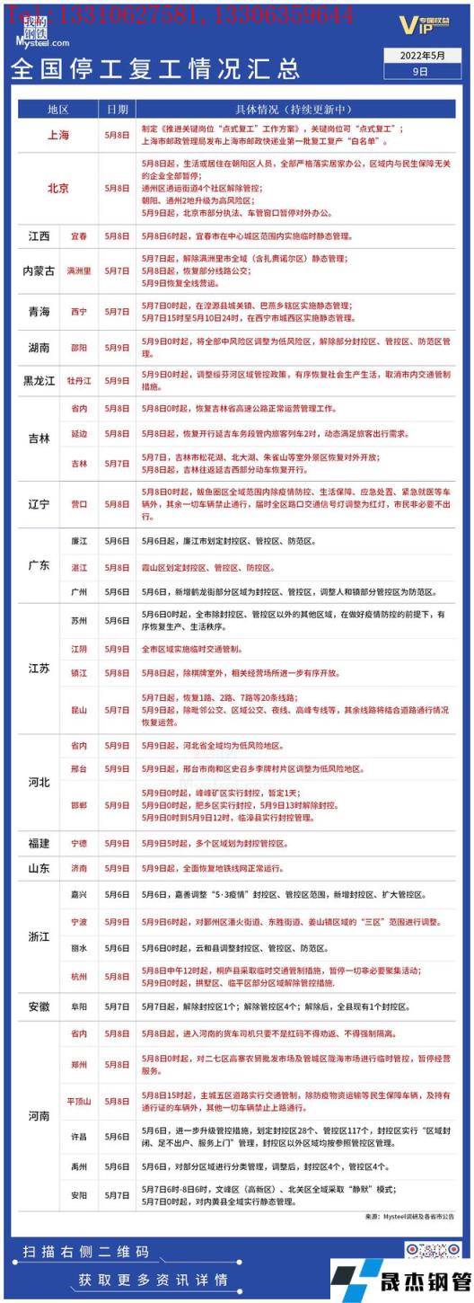 免責聲明:本網(wǎng)站(山東聊城晟杰無縫鋼管廠www.ahcom.com.cn)刊載的“疫情影響丨全國停工復工情況匯總(5月9日)”等均源于網(wǎng)絡,版權(quán)歸原作者所有,且僅代表原作者觀點,本文所載信息僅供參考。轉(zhuǎn)載僅為學習與交流之目的,如無意中侵犯您的合法權(quán)益,請及時聯(lián)系刪除。本網(wǎng)站刊登此篇文章并不意味著本站贊同其觀點或證實其內(nèi)容的真實性,我們不對其科學性、嚴肅性等作任何形式的保證。如果侵犯了您的版權(quán),請盡快聯(lián)系我們予以撤銷,謝謝合作!