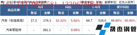 免責(zé)聲明:本網(wǎng)站(山東聊城晟杰無縫鋼管廠www.ahcom.com.cn)刊載的“海關(guān)總署:4月中國出口汽車17.1萬輛,同比增長10.32%”等均源于網(wǎng)絡(luò),版權(quán)歸原作者所有,且僅代表原作者觀點(diǎn),本文所載信息僅供參考。轉(zhuǎn)載僅為學(xué)習(xí)與交流之目的,如無意中侵犯您的合法權(quán)益,請及時(shí)聯(lián)系刪除。本網(wǎng)站刊登此篇文章并不意味著本站贊同其觀點(diǎn)或證實(shí)其內(nèi)容的真實(shí)性,我們不對其科學(xué)性、嚴(yán)肅性等作任何形式的保證。如果侵犯了您的版權(quán),請盡快聯(lián)系我們予以撤銷,謝謝合作!