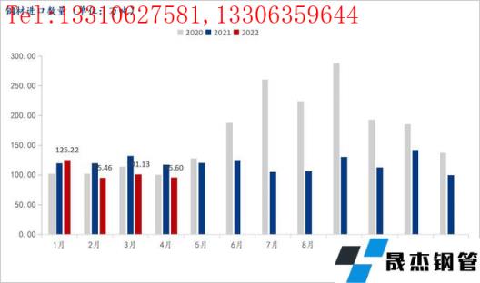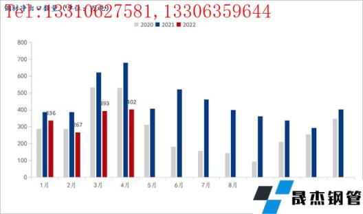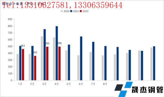 前言:海關總署5月9日數據顯示,2022年4月中國出口厚壁無縫鋼管497.7萬噸,較上月增加3.2萬噸,同比下降37.6%;1-4月累計出口厚壁無縫鋼管1815.6萬噸,同比下降29.2%。4月中國進口厚壁無縫鋼管95.6萬噸,較上月減少5.5萬噸,同比下降18.3%;1-4月累計進口厚壁無縫鋼管417.4萬噸,同比下降14.7%。