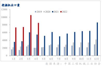 國內(nèi)龍頭企業(yè)對海外市場非常重視,產(chǎn)品質(zhì)量、價格和供應(yīng)鏈的保障上都有較強的競爭力,預(yù)計工程機械出口量仍持續(xù)較高增長。