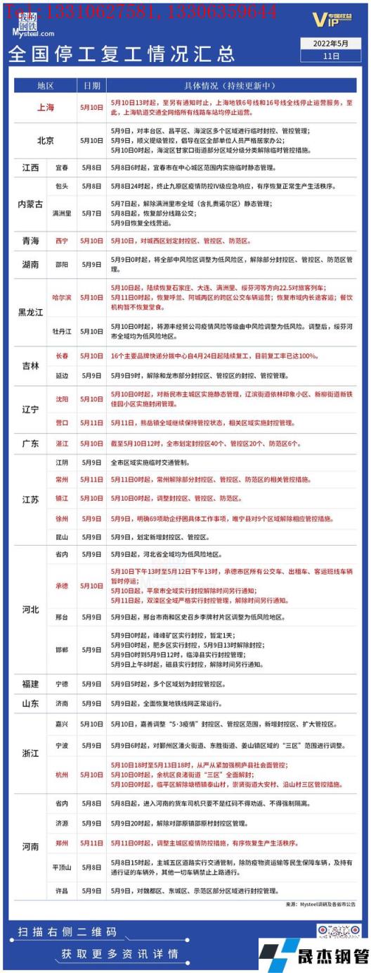 免責聲明:本網站(山東聊城晟杰無縫鋼管廠www.ahcom.com.cn)刊載的“疫情影響丨全國停工復工情況匯總(5月11日)”等均源于網絡,版權歸原作者所有,且僅代表原作者觀點,本文所載信息僅供參考。轉載僅為學習與交流之目的,如無意中侵犯您的合法權益,請及時聯系刪除。本網站刊登此篇文章并不意味著本站贊同其觀點或證實其內容的真實性,我們不對其科學性、嚴肅性等作任何形式的保證。如果侵犯了您的版權,請盡快聯系我們予以撤銷,謝謝合作!