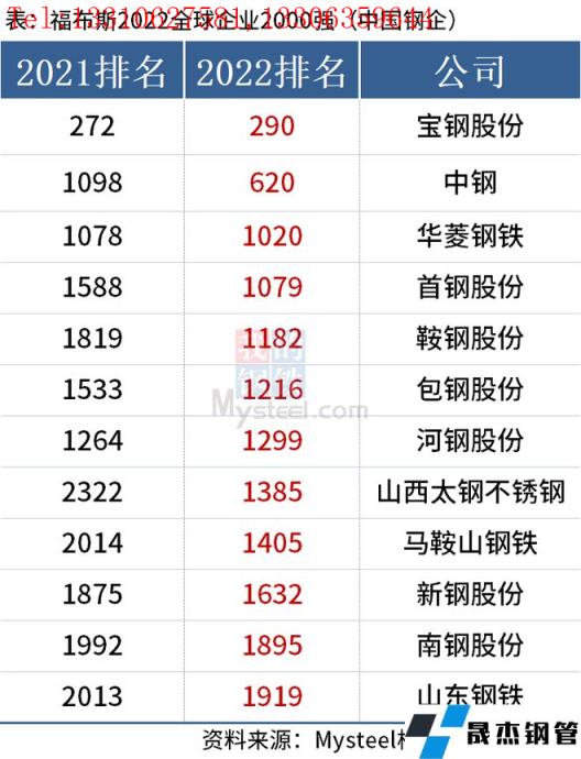 免責聲明:本網站(山東聊城晟杰無縫鋼管廠www.ahcom.com.cn)刊載的“中國12家鋼企上榜福布斯2022全球企業2000強”等均源于網絡,版權歸原作者所有,且僅代表原作者觀點,本文所載信息僅供參考。轉載僅為學習與交流之目的,如無意中侵犯您的合法權益,請及時聯系刪除。本網站刊登此篇文章并不意味著本站贊同其觀點或證實其內容的真實性,我們不對其科學性、嚴肅性等作任何形式的保證。如果侵犯了您的版權,請盡快聯系我們予以撤銷,謝謝合作!