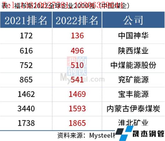 免責(zé)聲明:本網(wǎng)站(山東聊城晟杰無(wú)縫鋼管廠www.ahcom.com.cn)刊載的“中國(guó)7家煤企上榜福布斯2022全球企業(yè)2000強(qiáng)”等均源于網(wǎng)絡(luò),版權(quán)歸原作者所有,且僅代表原作者觀點(diǎn),本文所載信息僅供參考。轉(zhuǎn)載僅為學(xué)習(xí)與交流之目的,如無(wú)意中侵犯您的合法權(quán)益,請(qǐng)及時(shí)聯(lián)系刪除。本網(wǎng)站刊登此篇文章并不意味著本站贊同其觀點(diǎn)或證實(shí)其內(nèi)容的真實(shí)性,我們不對(duì)其科學(xué)性、嚴(yán)肅性等作任何形式的保證。如果侵犯了您的版權(quán),請(qǐng)盡快聯(lián)系我們予以撤銷(xiāo),謝謝合作!