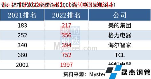 免責聲明:本網站(山東聊城晟杰無縫鋼管廠www.ahcom.com.cn)刊載的“中國5家家電企業上榜福布斯2022全球企業2000強”等均源于網絡,版權歸原作者所有,且僅代表原作者觀點,本文所載信息僅供參考。轉載僅為學習與交流之目的,如無意中侵犯您的合法權益,請及時聯系刪除。本網站刊登此篇文章并不意味著本站贊同其觀點或證實其內容的真實性,我們不對其科學性、嚴肅性等作任何形式的保證。如果侵犯了您的版權,請盡快聯系我們予以撤銷,謝謝合作!