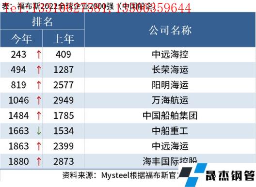 免責聲明:本網站(山東聊城晟杰無縫鋼管廠www.ahcom.com.cn)刊載的“:中國8家船企上榜福布斯2022全球企業2000強”等均源于網絡,版權歸原作者所有,且僅代表原作者觀點,本文所載信息僅供參考。轉載僅為學習與交流之目的,如無意中侵犯您的合法權益,請及時聯系刪除。本網站刊登此篇文章并不意味著本站贊同其觀點或證實其內容的真實性,我們不對其科學性、嚴肅性等作任何形式的保證。如果侵犯了您的版權,請盡快聯系我們予以撤銷,謝謝合作!