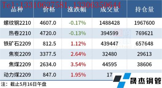 免責聲明:本網站(山東聊城晟杰無縫鋼管廠www.ahcom.com.cn)刊載的“2022年05月16日午報:鋼價漲跌互現,焦煤期貨漲逾3%”等均源于網絡,版權歸原作者所有,且僅代表原作者觀點,本文所載信息僅供參考。轉載僅為學習與交流之目的,如無意中侵犯您的合法權益,請及時聯系刪除。本網站刊登此篇文章并不意味著本站贊同其觀點或證實其內容的真實性,我們不對其科學性、嚴肅性等作任何形式的保證。如果侵犯了您的版權,請盡快聯系我們予以撤銷,謝謝合作!