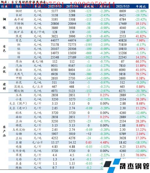 免責聲明:本網站(山東聊城晟杰無縫鋼管廠www.ahcom.com.cn)刊載的“周報:大宗工業原材料、能源及農產品價格周報(5.09-5.13)”等均源于網絡,版權歸原作者所有,且僅代表原作者觀點,本文所載信息僅供參考。轉載僅為學習與交流之目的,如無意中侵犯您的合法權益,請及時聯系刪除。本網站刊登此篇文章并不意味著本站贊同其觀點或證實其內容的真實性,我們不對其科學性、嚴肅性等作任何形式的保證。如果侵犯了您的版權,請盡快聯系我們予以撤銷,謝謝合作!
