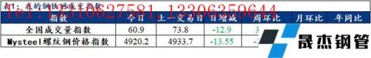 訊:全國建筑厚壁無縫鋼管成交量監(jiān)測,成交量相對指數(shù)來看,全國60.9減12.9,北方51.1減0.5,華東75.7減22.9,南方51.5減9.8。今日螺紋鋼價格指數(shù)4920.2,較上一交易日減13.55。
