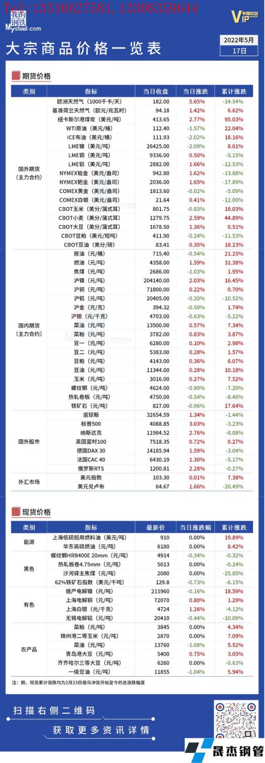免責聲明:本網站(山東聊城晟杰無縫鋼管廠www.ahcom.com.cn)刊載的“俄烏局勢丨大宗商品價格一覽表(5月17日)”等均源于網絡,版權歸原作者所有,且僅代表原作者觀點,本文所載信息僅供參考。轉載僅為學習與交流之目的,如無意中侵犯您的合法權益,請及時聯系刪除。本網站刊登此篇文章并不意味著本站贊同其觀點或證實其內容的真實性,我們不對其科學性、嚴肅性等作任何形式的保證。如果侵犯了您的版權,請盡快聯系我們予以撤銷,謝謝合作!