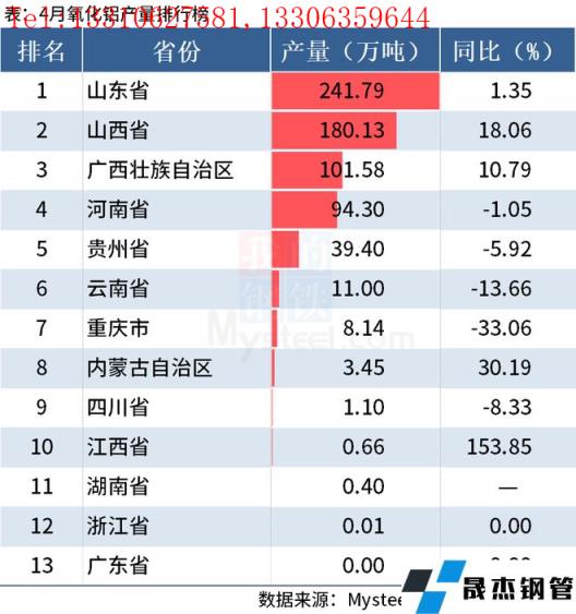 免責(zé)聲明:本網(wǎng)站(山東聊城晟杰無縫鋼管廠www.ahcom.com.cn)刊載的“統(tǒng)計(jì)局:前4月全國分省市鋁材、氧化鋁產(chǎn)量出爐”等均源于網(wǎng)絡(luò),版權(quán)歸原作者所有,且僅代表原作者觀點(diǎn),本文所載信息僅供參考。轉(zhuǎn)載僅為學(xué)習(xí)與交流之目的,如無意中侵犯您的合法權(quán)益,請及時聯(lián)系刪除。本網(wǎng)站刊登此篇文章并不意味著本站贊同其觀點(diǎn)或證實(shí)其內(nèi)容的真實(shí)性,我們不對其科學(xué)性、嚴(yán)肅性等作任何形式的保證。如果侵犯了您的版權(quán),請盡快聯(lián)系我們予以撤銷,謝謝合作!