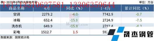 免責聲明:本網站(山東聊城晟杰無縫鋼管廠www.ahcom.com.cn)刊載的“統計局:4月中國四大家電產量同比3降1增”等均源于網絡,版權歸原作者所有,且僅代表原作者觀點,本文所載信息僅供參考。轉載僅為學習與交流之目的,如無意中侵犯您的合法權益,請及時聯系刪除。本網站刊登此篇文章并不意味著本站贊同其觀點或證實其內容的真實性,我們不對其科學性、嚴肅性等作任何形式的保證。如果侵犯了您的版權,請盡快聯系我們予以撤銷,謝謝合作!