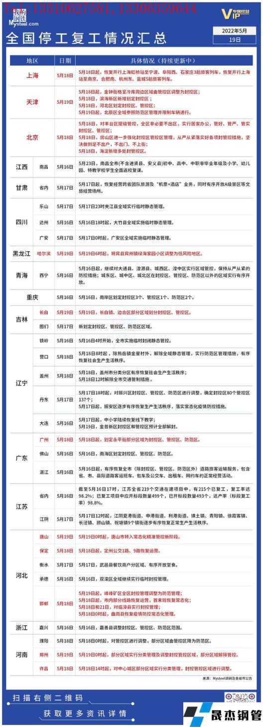 免責聲明:本網站(山東聊城晟杰無縫鋼管廠www.ahcom.com.cn)刊載的“疫情影響丨全國停工復工情況匯總(5月19日)”等均源于網絡,版權歸原作者所有,且僅代表原作者觀點,本文所載信息僅供參考。轉載僅為學習與交流之目的,如無意中侵犯您的合法權益,請及時聯系刪除。本網站刊登此篇文章并不意味著本站贊同其觀點或證實其內容的真實性,我們不對其科學性、嚴肅性等作任何形式的保證。如果侵犯了您的版權,請盡快聯系我們予以撤銷,謝謝合作!