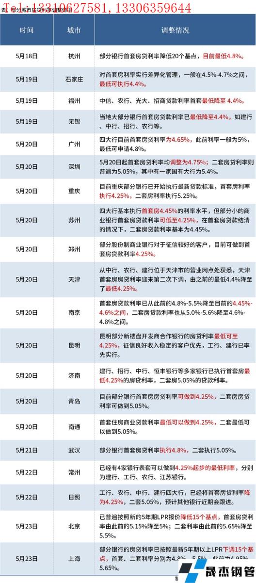 在五年期LPR大幅下調疊加房貸利率調整下限雙重影響下,各地銀行快速響應,下調當地房貸利率。據不完全統計,截至5月23日,已有10城將首套房貸利率最低降至4.25%,一線城市也有所調整,其中北京、上海、廣州、深圳均已下調15個基點,具體情況如下: