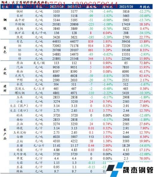免責聲明:本網站(山東聊城晟杰無縫鋼管廠www.ahcom.com.cn)刊載的“周報:大宗工業原材料、能源及農產品價格周報(5.16-5.20)”等均源于網絡,版權歸原作者所有,且僅代表原作者觀點,本文所載信息僅供參考。轉載僅為學習與交流之目的,如無意中侵犯您的合法權益,請及時聯系刪除。本網站刊登此篇文章并不意味著本站贊同其觀點或證實其內容的真實性,我們不對其科學性、嚴肅性等作任何形式的保證。如果侵犯了您的版權,請盡快聯系我們予以撤銷,謝謝合作!