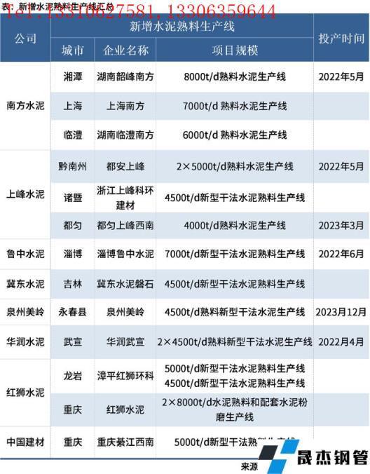 免責聲明:本網站(山東聊城晟杰無縫鋼管廠www.ahcom.com.cn)刊載的“:5月新增11條熟料水泥生產線,紅獅產能最大”等均源于網絡,版權歸原作者所有,且僅代表原作者觀點,本文所載信息僅供參考。轉載僅為學習與交流之目的,如無意中侵犯您的合法權益,請及時聯系刪除。本網站刊登此篇文章并不意味著本站贊同其觀點或證實其內容的真實性,我們不對其科學性、嚴肅性等作任何形式的保證。如果侵犯了您的版權,請盡快聯系我們予以撤銷,謝謝合作!