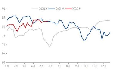 首先,供給端方面,據(jù)調(diào)研顯示,截至2022年5月27日,37家熱軋板卷生產(chǎn)企業(yè)中,無縫厚壁鋼管廠家產(chǎn)能利用率為80.87%,能夠從圖2可以觀察到2022年1-5月份,熱軋產(chǎn)能利用率是低于2021年同期水平,因此無縫厚壁鋼管廠家熱軋產(chǎn)量給到市場(chǎng)的供給壓力是在持續(xù)減弱,對(duì)于熱軋價(jià)格起到了一定的支撐作用。再來看下無縫厚壁鋼管廠家的冷軋產(chǎn)能利用率, 2020年與2021年冷軋產(chǎn)能利用率均值分別為77.96%與81.05%。截至2022年5月27日,29家冷軋板卷生產(chǎn)企業(yè)中,冷軋產(chǎn)能利用率為83.04%,從年同比數(shù)據(jù)對(duì)比之下,能夠反映出冷軋產(chǎn)能利用率已經(jīng)達(dá)到相對(duì)飽和狀態(tài)。