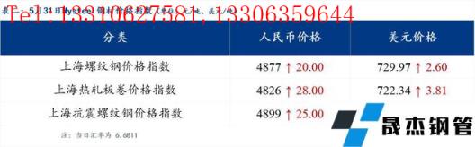 5月31日普鋼絕對(duì)價(jià)格指數(shù)變化:綜合指數(shù)5042.44,上漲6.6;螺紋鋼指數(shù)4788.87,上漲7.99;線材指數(shù)5192.27,上漲5.51;熱軋板卷指數(shù)4859.23,上漲15.15;冷軋板卷指數(shù)5342.19,上漲7.07;中厚板指數(shù)5060.43,上漲2.54。