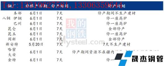 根據(jù)2022年5月中旬在烏魯木齊召開的新疆鋼鐵行業(yè)健康運(yùn)行小組會(huì)議,后期經(jīng)疆內(nèi)各無縫厚壁鋼管廠家共同溝通,確定最終停減產(chǎn)方案:決定停限產(chǎn)開始時(shí)間調(diào)整為2022年6月1日,停產(chǎn)時(shí)間統(tǒng)一調(diào)整為7天,后期視情況做出相應(yīng)調(diào)整。
