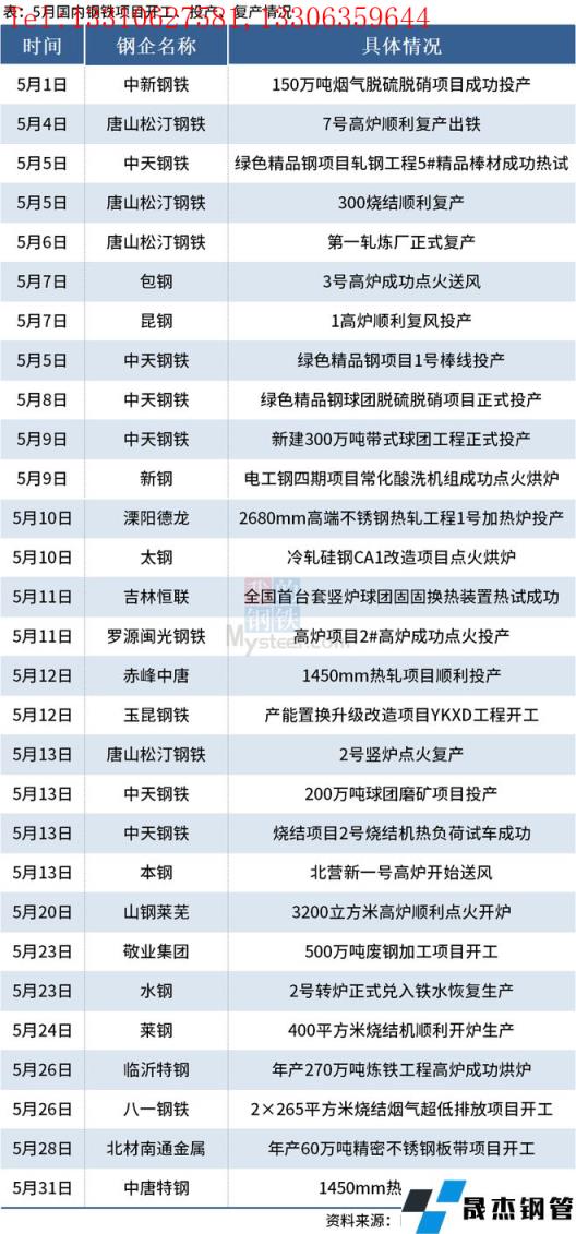 免責聲明:本網站(山東聊城晟杰無縫鋼管廠www.ahcom.com.cn)刊載的“5月國內29個鋼鐵項目開工、投產或復產”等均源于網絡,版權歸原作者所有,且僅代表原作者觀點,本文所載信息僅供參考。轉載僅為學習與交流之目的,如無意中侵犯您的合法權益,請及時聯系刪除。本網站刊登此篇文章并不意味著本站贊同其觀點或證實其內容的真實性,我們不對其科學性、嚴肅性等作任何形式的保證。如果侵犯了您的版權,請盡快聯系我們予以撤銷,謝謝合作!