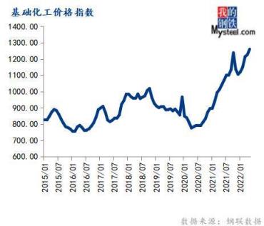 5月份基礎化工價格指數為1260.63,環比上漲2.77%,同比上漲21.14%。