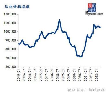 5月份紡織價格指數為1047.23,環比下跌0.23%,同比上漲12.03%。