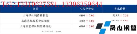 6月6日普鋼絕對價格指數變化:綜合指數5080.66,上漲14.13;螺紋鋼指數4850.55,上漲20.83;線材指數5249.06,上漲21.29;熱軋板卷指數4901.23,上漲11.73;冷軋板卷指數5353.19,上漲11.05;中厚板指數5086.67,上漲16.52。